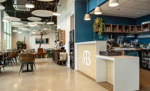 Aménagement intérieur d'un snack à Kinosa : un projet sur mesure alliant fonctionnalité, confort et esthétique. Grâce à son savoir-faire…