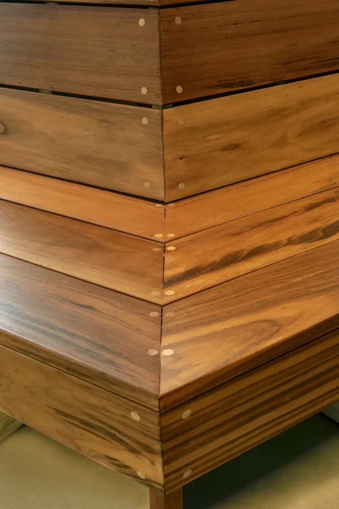La fabrication de la banquette a été précédée d’une étude précise de l’espace, avec propositions de design, choix d’essence de bois et optimisation des dimensions. Chaque élément a été façonné pour s’harmoniser avec l’ambiance générale du lieu, tout en garantissant une assise stable et facile à entretenir.